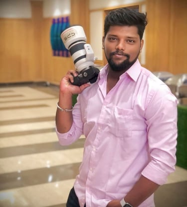 Later in college, I bought a Canon 1300 camera without even telling my parents — though it was their money that I withdrew from the bank. I clicked many shoots with my school and college friends and even covered a few college events.Then COVID came. I thought it was a break for me, but actually, the real twist started there. My very close friend, Akila Lenin, called me for her baby shower shoot. From there, my event journey truly began. I also worked as an assistant photographer at SR Digital Studio, managed by Mr. Saran Raj. That’s where I learned how to handle events properly. Soon, I started getting back-to-back event bookings. So I bought another camera, the Canon 70D, and shot even more events.
